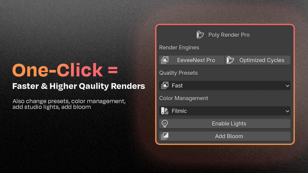Introducing Poly Render Pro—the ultimate Blender add-on that transforms your rendering process into a lightning-fast, one-click adventure.